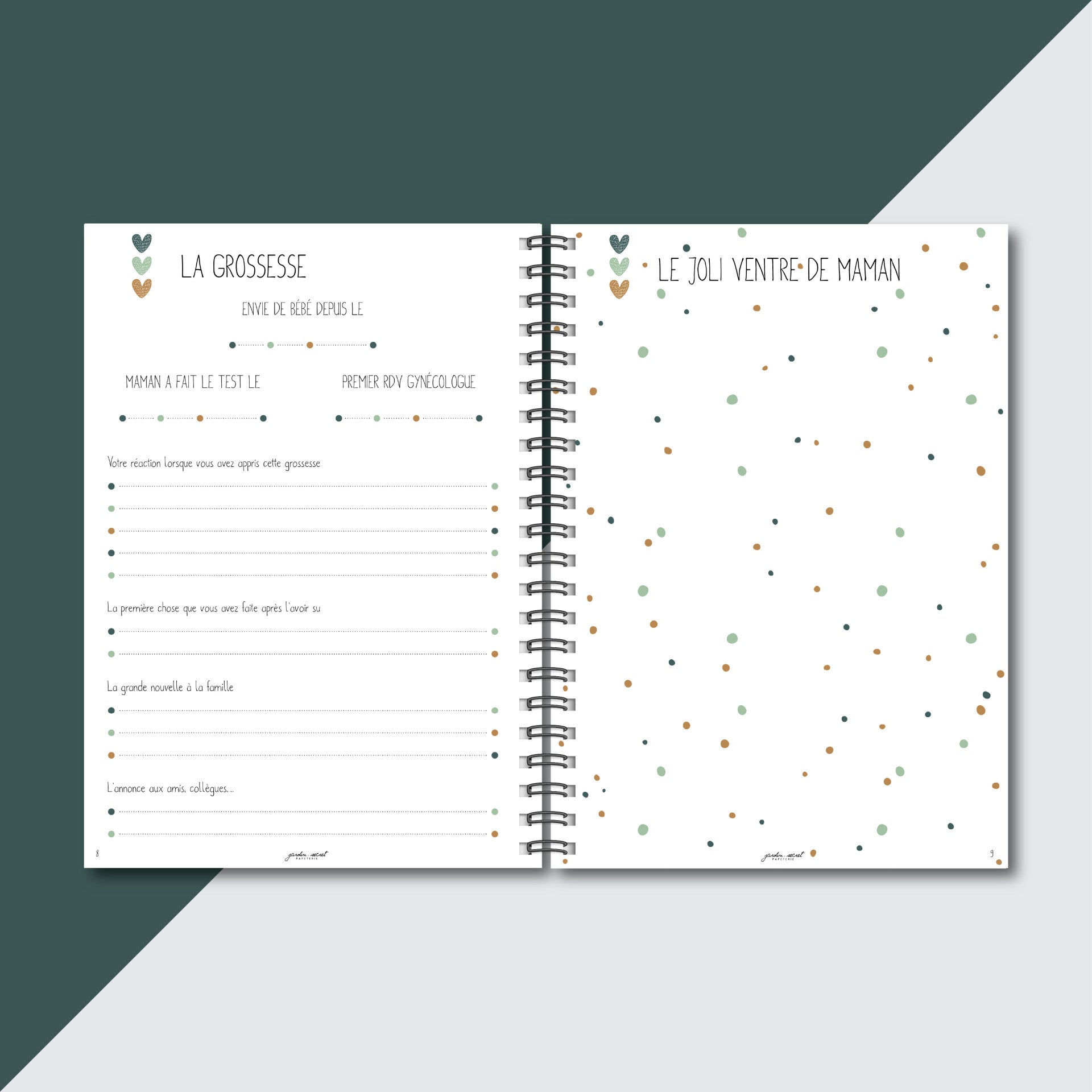 Carnet non genrée // convient à tous les couples, Papa/Maman, Maman/Maman, Papa/Papa (même si il y a une page photo pour le ventre de la maman)