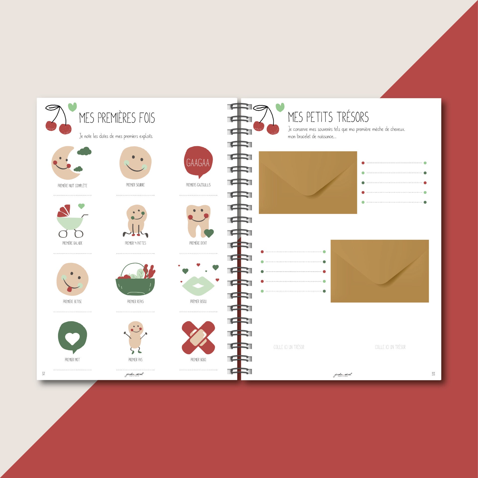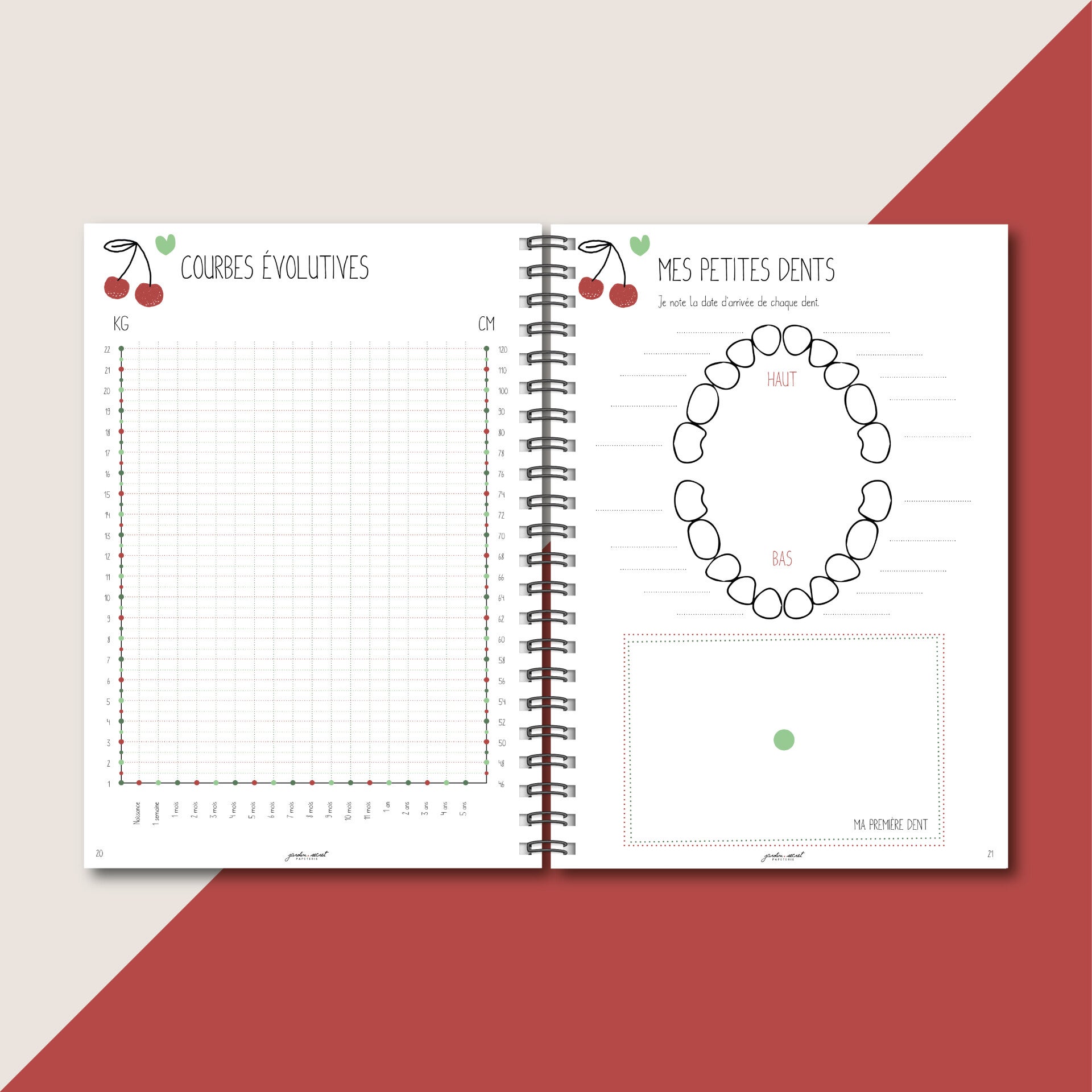 Carnet bébé 0 à 5 ans à remplir – Album A4 souvenirs naissance & enfance – Journal bébé grossesse à 5 ans _ Cerise