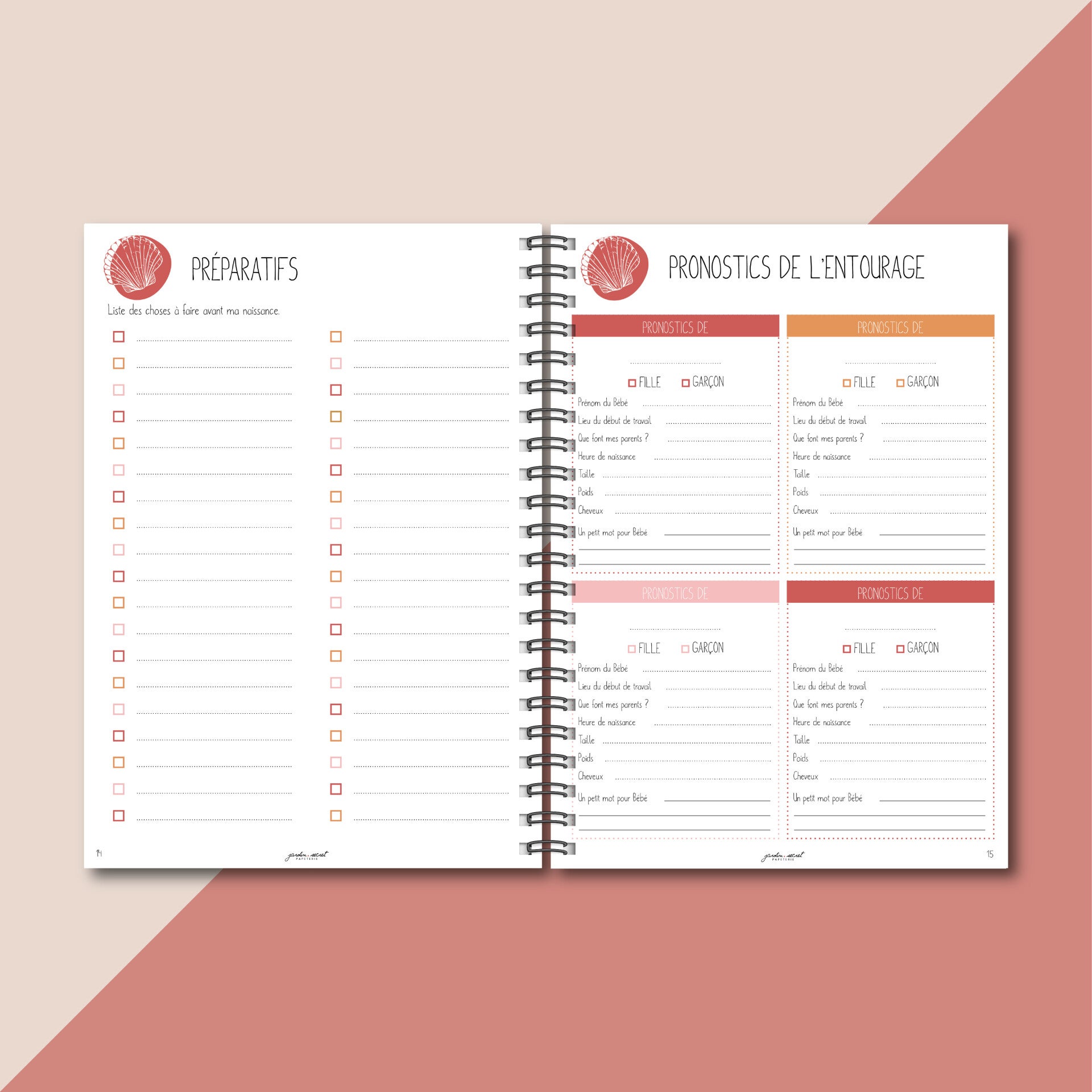 Carnet non genrée // convient à tous les couples, Papa/Maman, Maman/Maman, Papa/Papa (même si il y a une page photo pour le ventre de la maman)