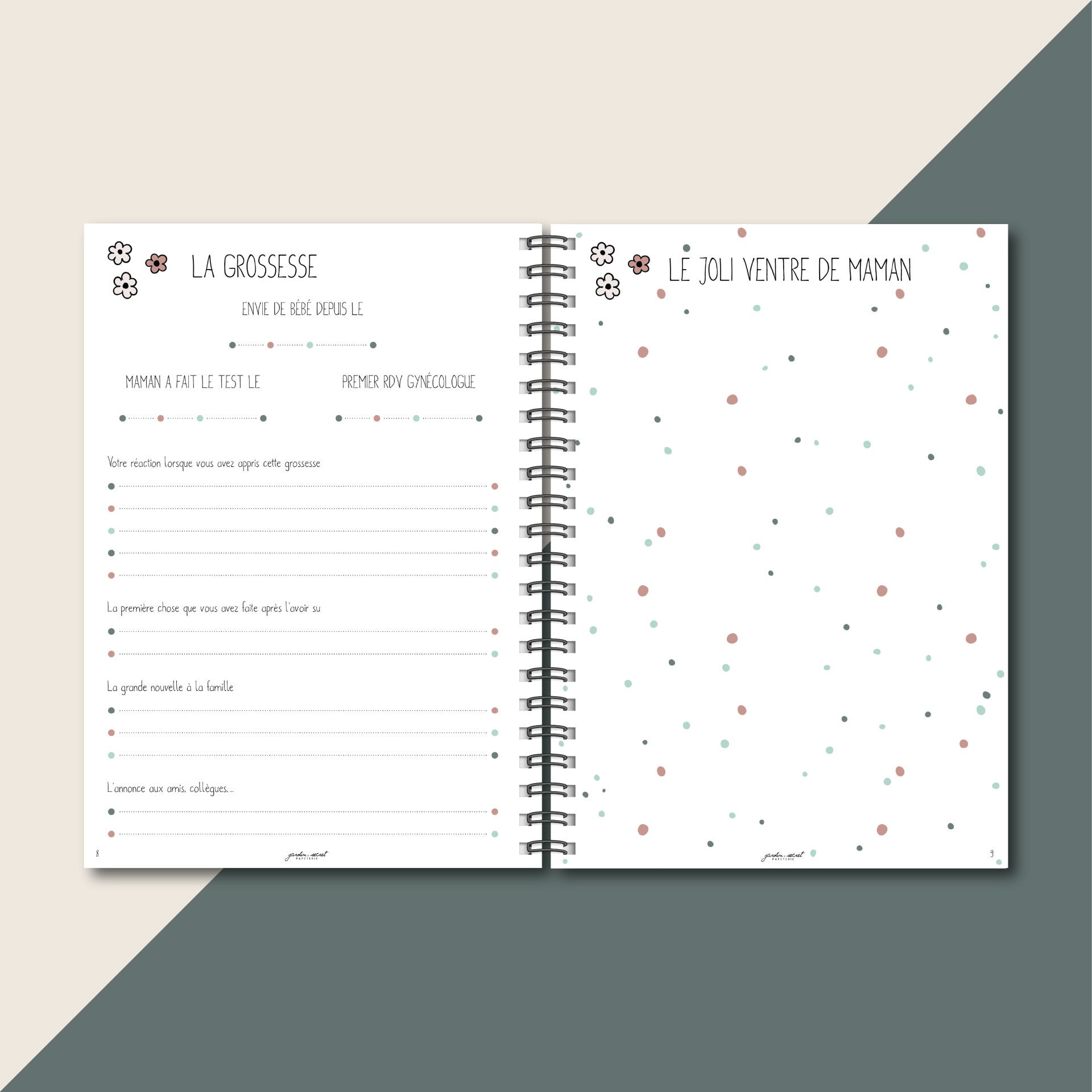 Carnet non genrée // convient à tous les couples, Papa/Maman, Maman/Maman, Papa/Papa (même si il y a une page photo pour le ventre de la maman)