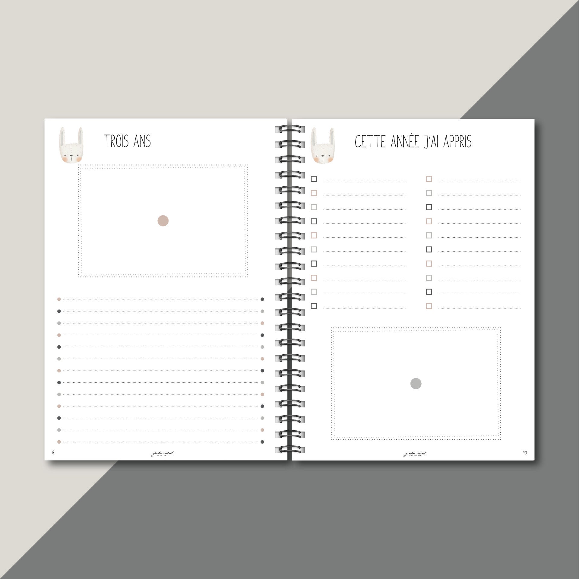 Carnet bébé 0 à 5 ans à remplir – Album A4 souvenirs naissance & enfance – Journal bébé grossesse à 5 ans _ Lapin