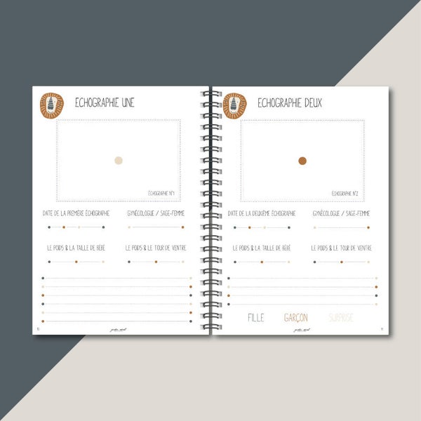 Carnet non genrée // convient à tous les couples, Papa/Maman, Maman/Maman, Papa/Papa (même si il y a une page photo pour le ventre de la maman)